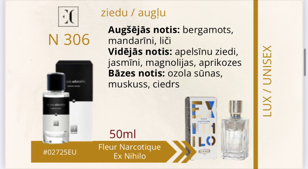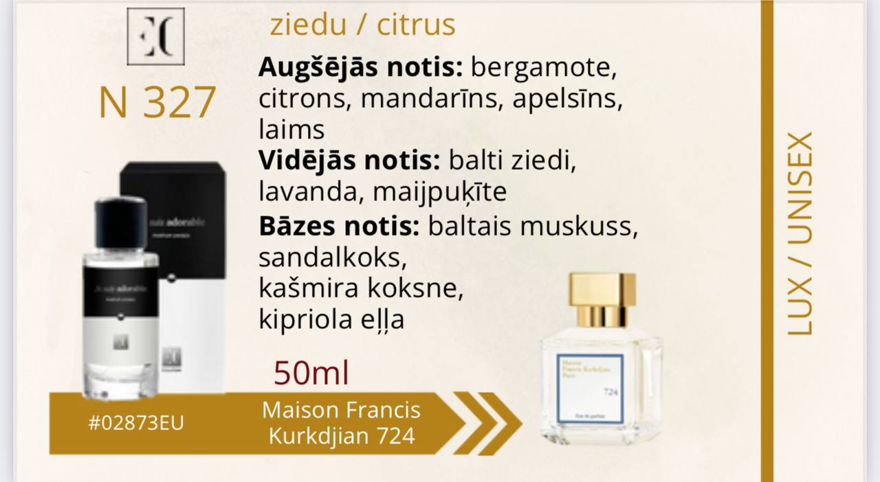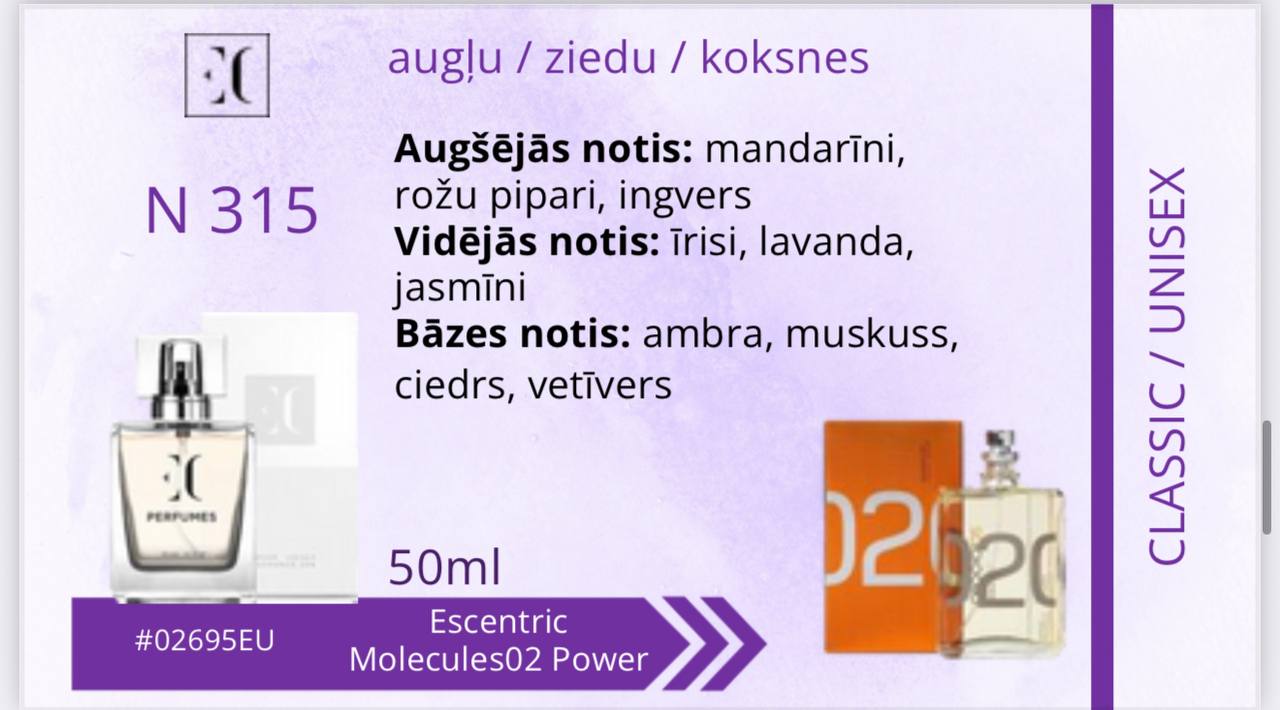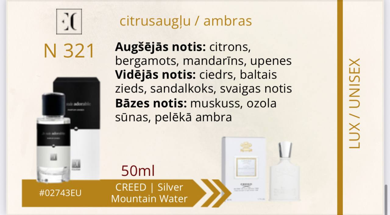 Aromāts tiem, kas smaržās meklē ko vairāk. Tiem, kas ir gatavi apvienot sevī pretstatus — eleganci un spēku, maigumu un kaisli. Kompozīcijas pirmie akordi ietin ādas un kardamona siltumā. Vidējās jasmīna un vijolīšu lapu notis rada mīkstu un maigu harmoniju. Aromāta dziļumu atklāj pačuli lapu un ozola sūnu bāzes notis, atstājot neaizmirstamu šleifi — kā melodija, kura atsaucas sirdī.